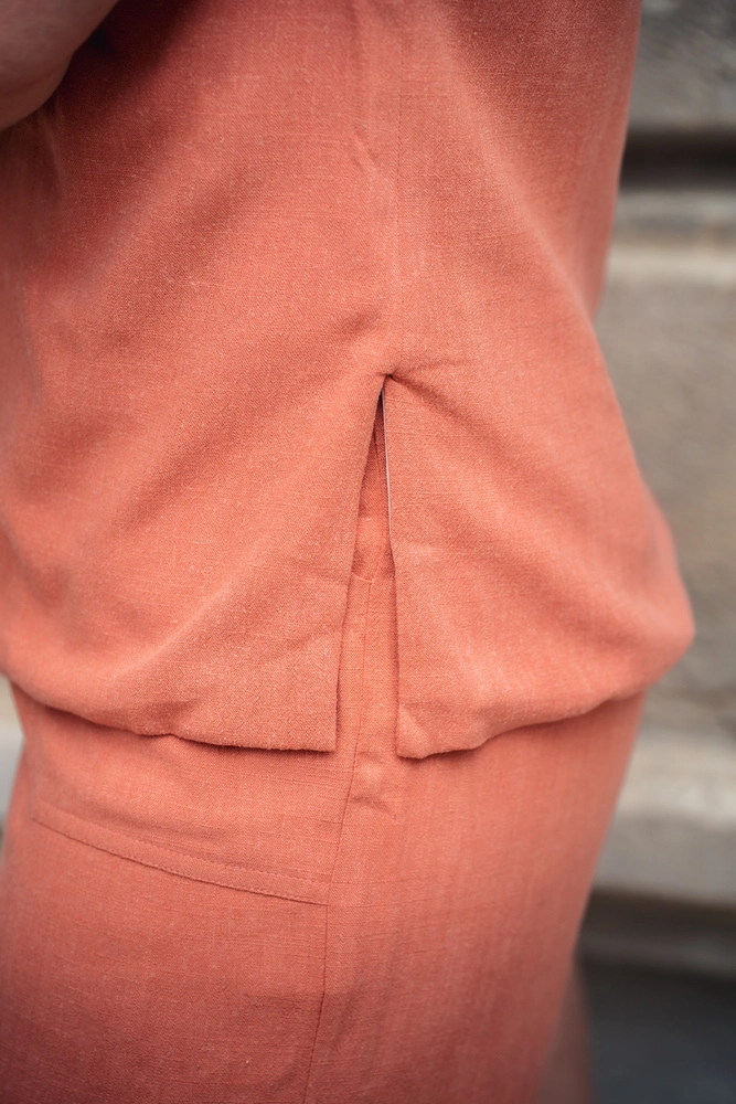 Il a ce caractère propre aux pièces qui osent la couleur. Le corail est une teinte rare, ni trop sage ni trop audacieuse. Elle va avec toutes les carnations, réchauffe le teint, s’associe naturellement avec du blanc, du beige ou du lin naturel. Portez-le avec le Short Livia corail pour un ensemble complet ou avec le Pantalon Elise Ice pour un mélange de couleurs et de matières plus décontracté.