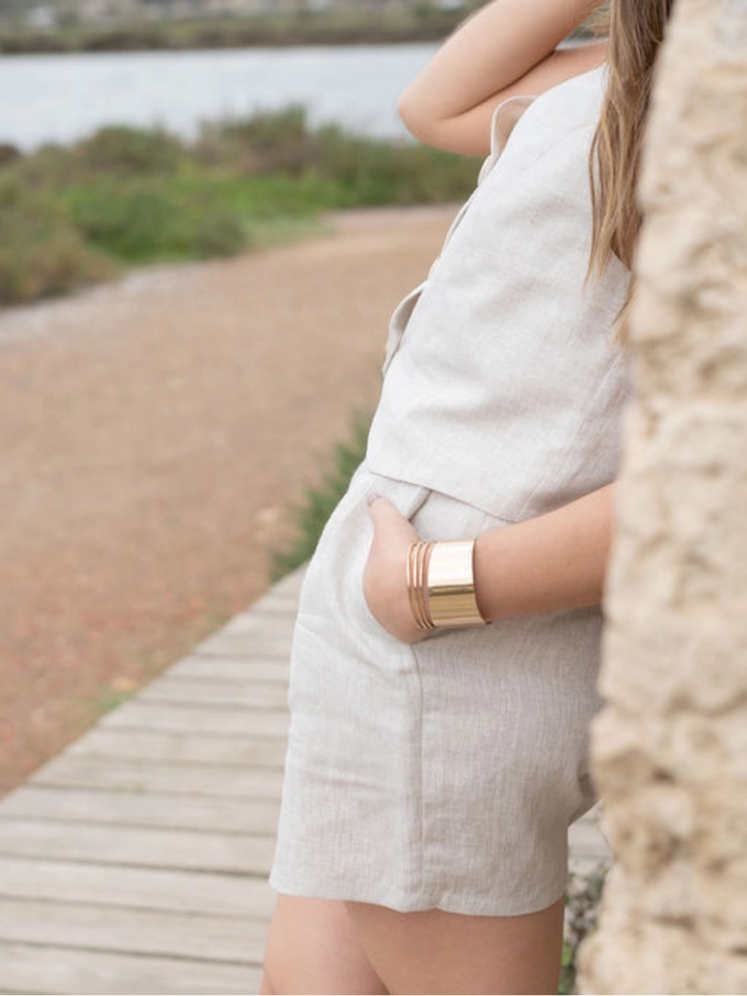 Pensé pour la femme moderne et engagée, le Short Athéna est fabriqué en petites quantités dans un petit atelier, pour garantir une production éthique et responsable. Associe-le au gilet Nina pour un ensemble harmonieux ou à une chemise légère pour une allure chic et estivale.